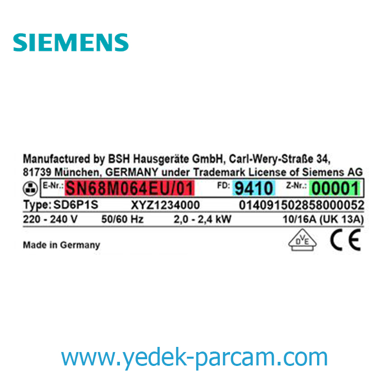 | Siemens | WM10E410TR/01 | 00151409 |